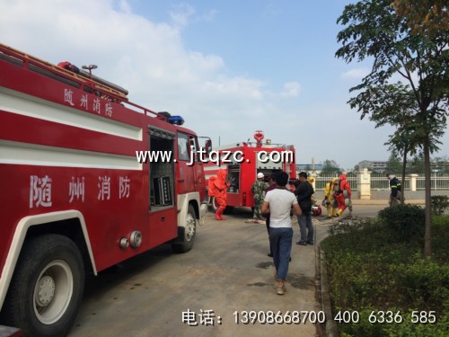 江特牌消防車在湖北消防化工災害跨區(qū)搶險救援隨州片區(qū)實戰(zhàn)演習中扮演重要角色(圖)