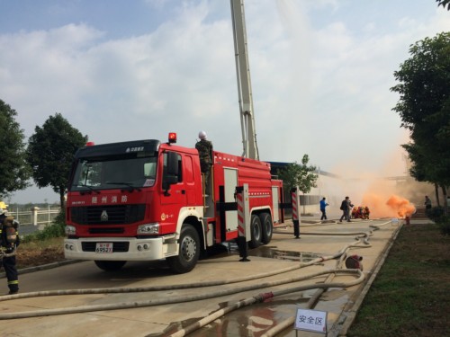 隨州消防新聞:湖北犇形化工是我市石油化工重點單位,存儲了大量天然氣給化公產品,火災危險性極大、風險性極高。為堅決預防和遏制重特大火災的發(fā)生,提高消防部隊應急救援能力,9月29日下午,湖北省消防部隊組織在隨州片區(qū)聯合襄陽消防部隊、孝感消防部隊、隨州消防部隊及森林消防部隊,衛(wèi)生救援應急隊對犇星化工進火災撲救演習。這次實戰(zhàn)演習規(guī)模大,多只消防部隊跨區(qū)聯合演習,共出動17臺消防車,其中我公司派出5臺消防車(6噸東風153水罐消防車、6噸東風天錦水罐消防車、豪沃8噸泡沫消防車、豪沃15噸泡沫消防車、五十鈴12噸泡沫消防車)參加演習,在這次實戰(zhàn)演習中扮演重要角色。